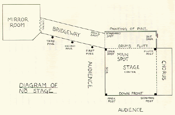 Out: Ahí os dejo el escenario (una imagen y el plano), una máscara Noh y un momento de la representación.[/img] |